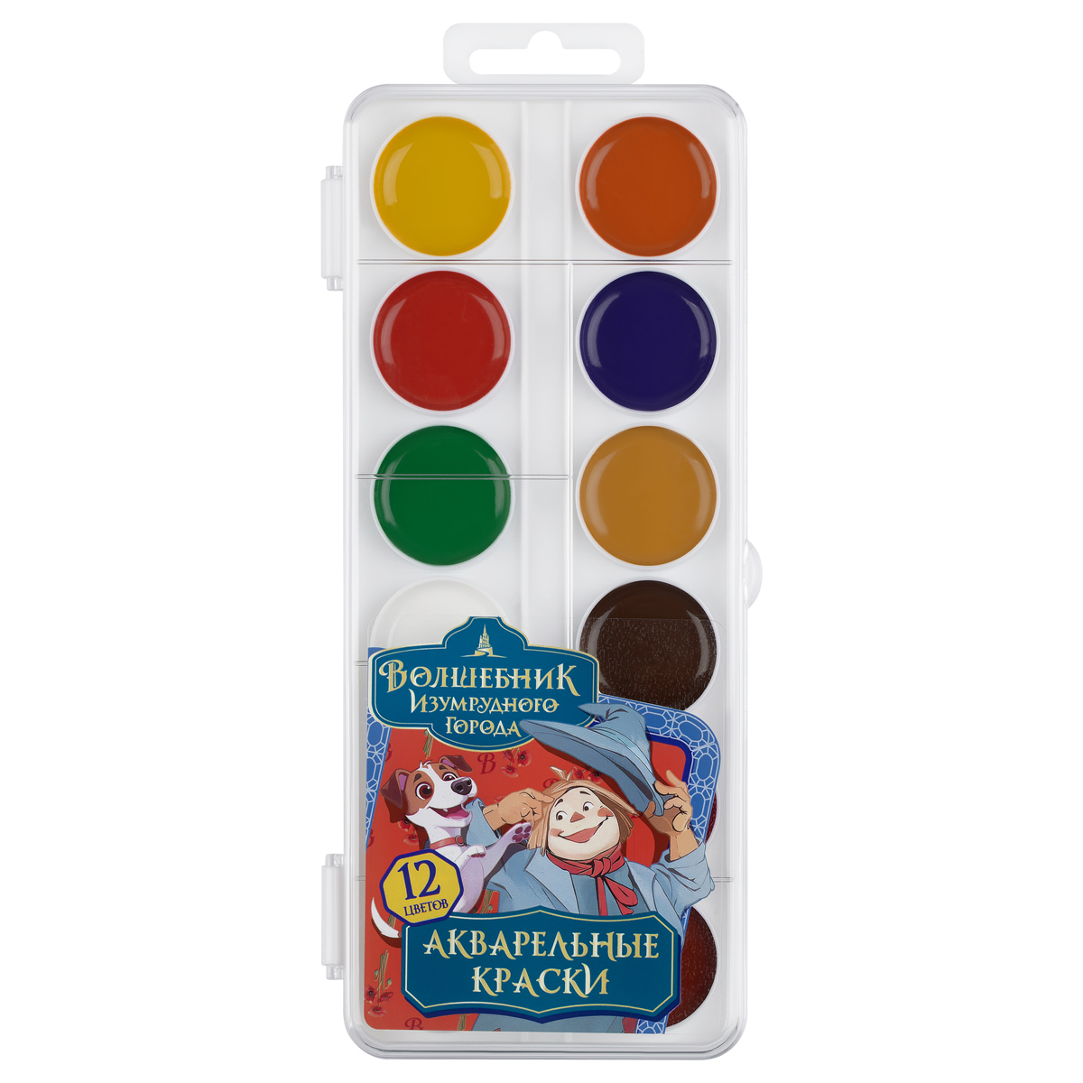 376064 Акварель Мульти-Пульти "Волшебник Изумрудного Города", медовая, 12 цветов, без кисти, пластик, европодвес