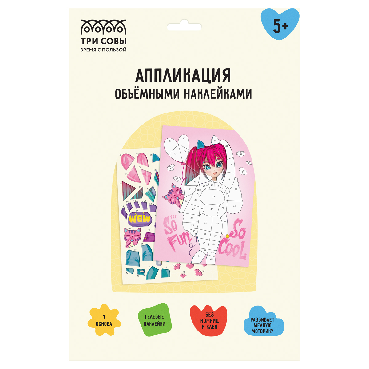 378012 Аппликация наклейками ТРИ СОВЫ "Аниме", А4, 1 основа, объемные наклейки, картонный конверт
