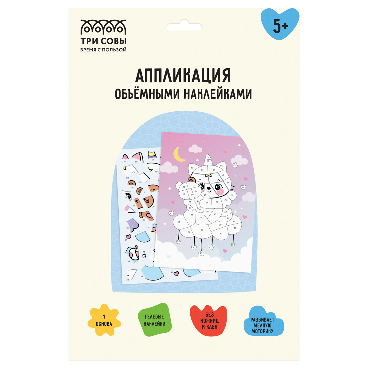 378017 Аппликация наклейками ТРИ СОВЫ "Котофея", А4, 1 основа, объемные наклейки, картонный конверт