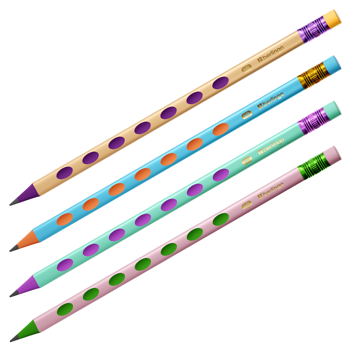 320774 Карандаш ч/г Berlingo "Flexy Pastel" HB, с ластиком, трехгранный, заточен., пластиковый, ПВХ-бокс (BERLINGO_)