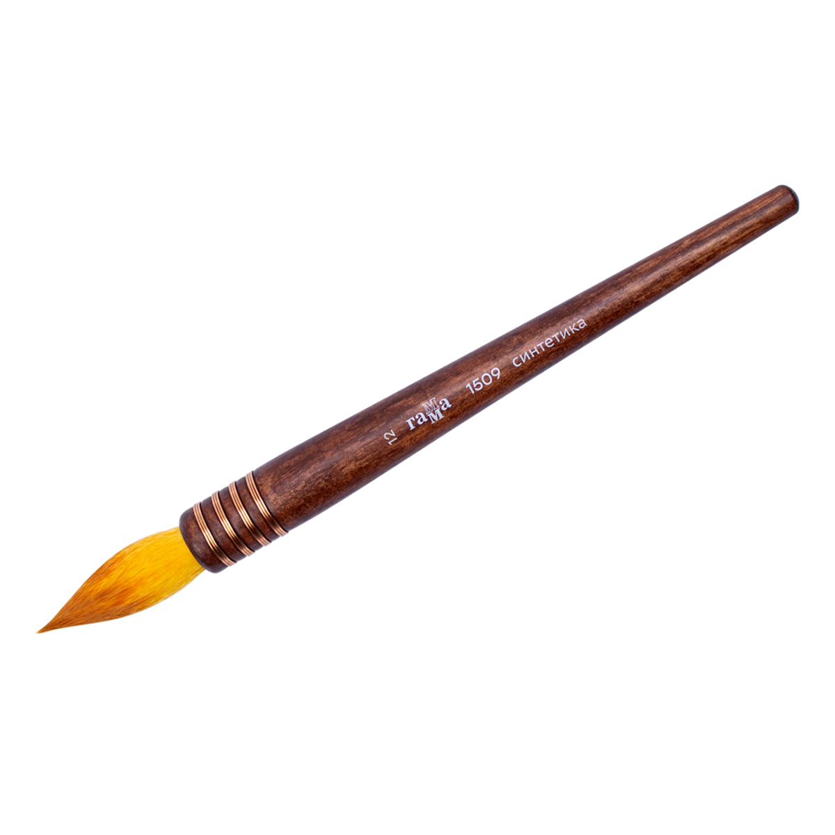 356592 Кисть художественная для каллиграфии Гамма, синтетика круглая, №12, короткая ручка без обоймы (Гамма_художка/хобб...
