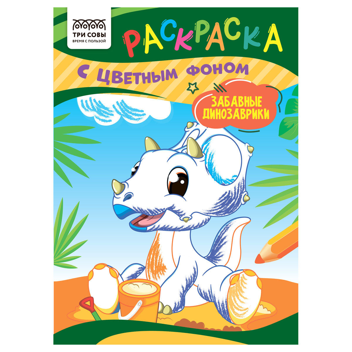367616 Раскраска с цв. фоном А5, 8 стр., ТРИ СОВЫ "Забавные динозаврики" (ТРИ СОВЫ_Издательство)