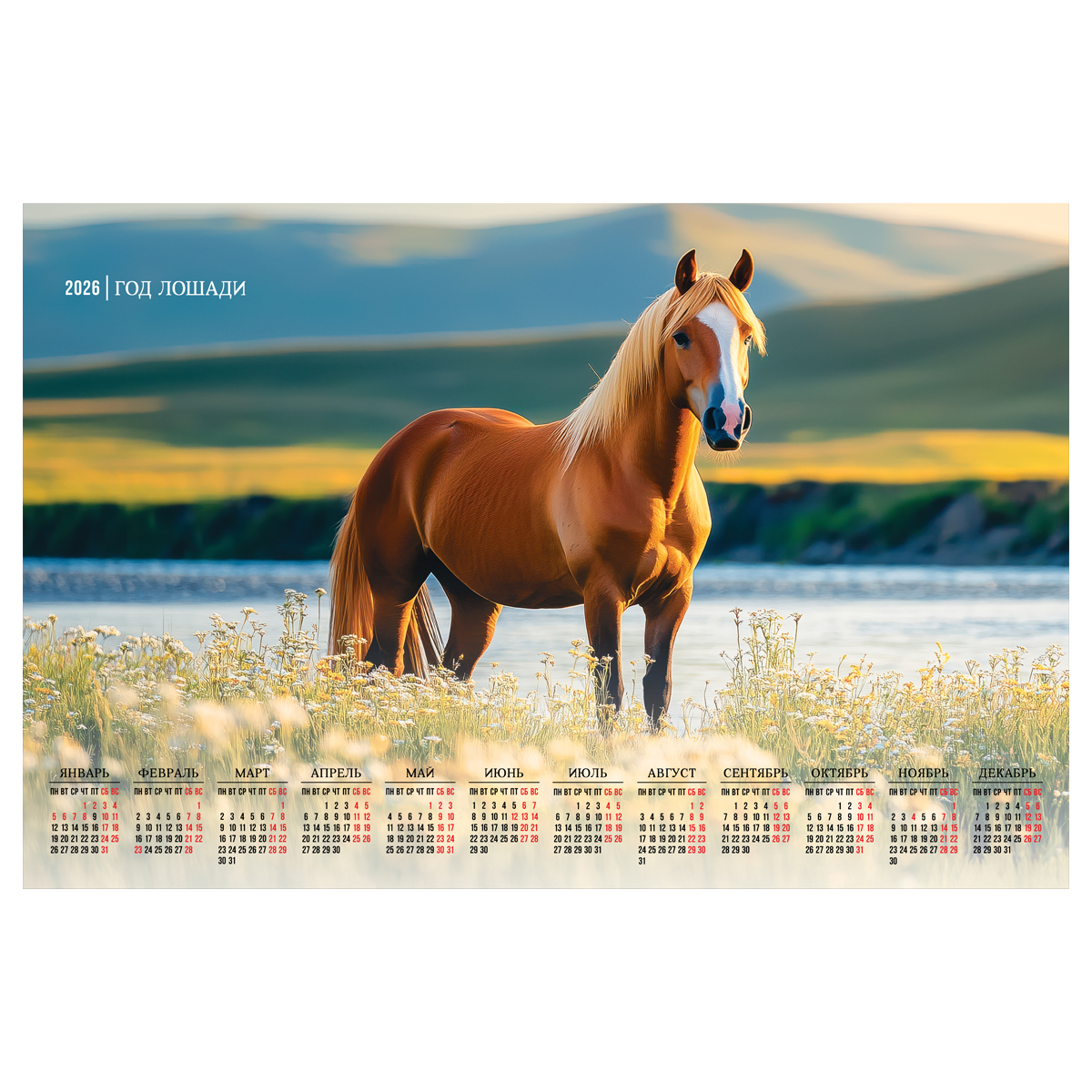 382134 Календарь настенный листовой А2, 450*590 мм BG "Лошадь", 2026г (БиДжи)