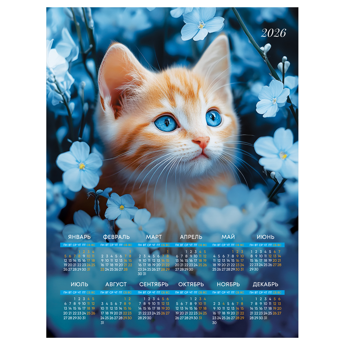 382136 Календарь настенный листовой А2, 450*590 мм BG "Котенок", 2026г (БиДжи)