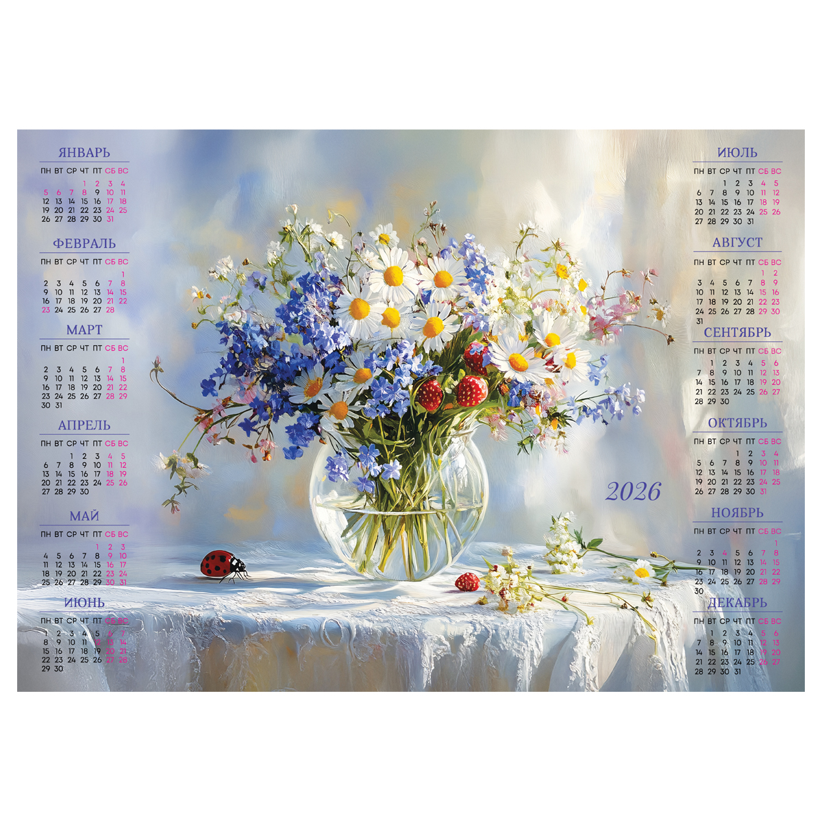 382139 Календарь настенный листовой А3, 300*420 мм BG "Полевые цветы", 2026г (БиДжи)