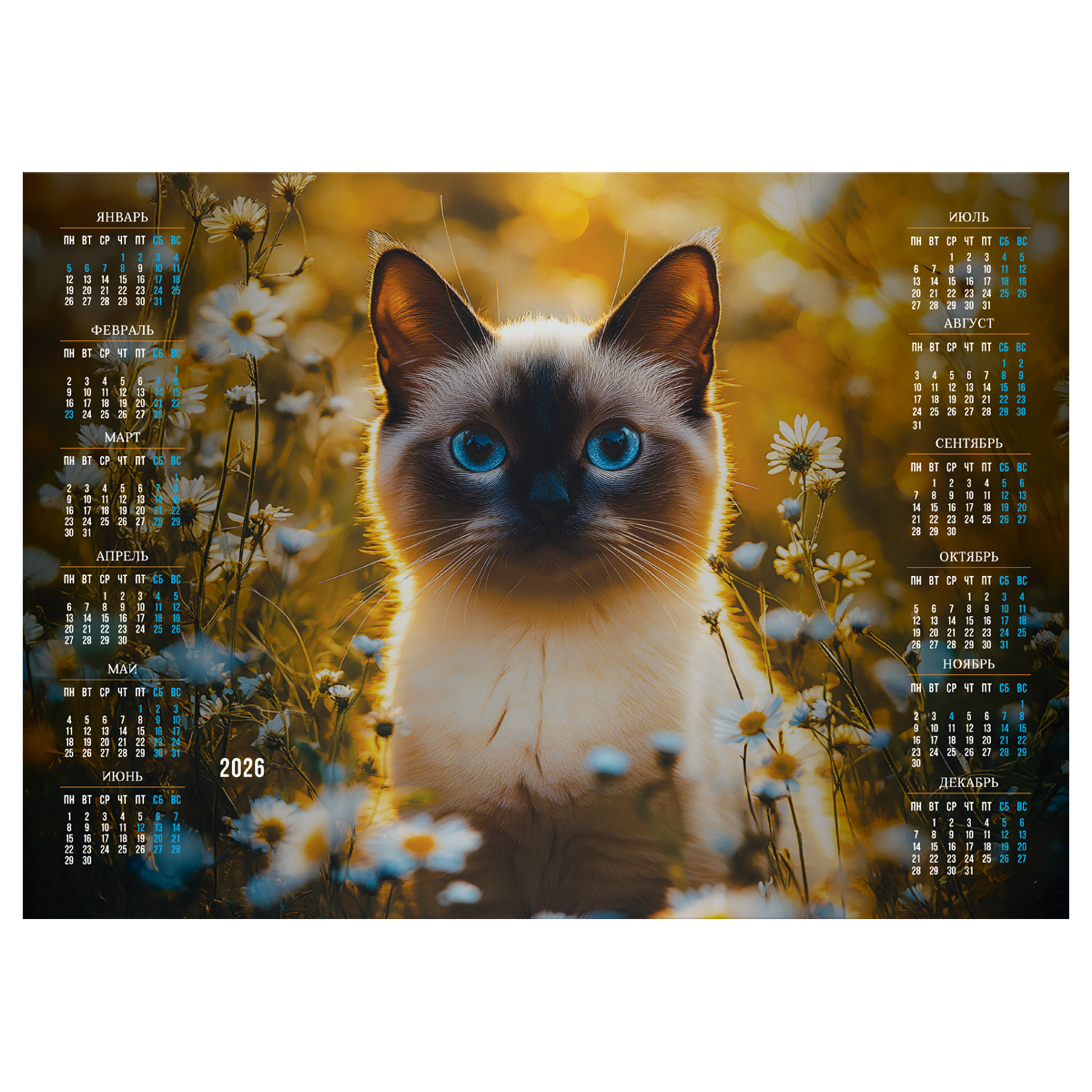 382141 Календарь настенный листовой А3, 300*420 мм BG "Симский кот", 2026г (БиДжи)