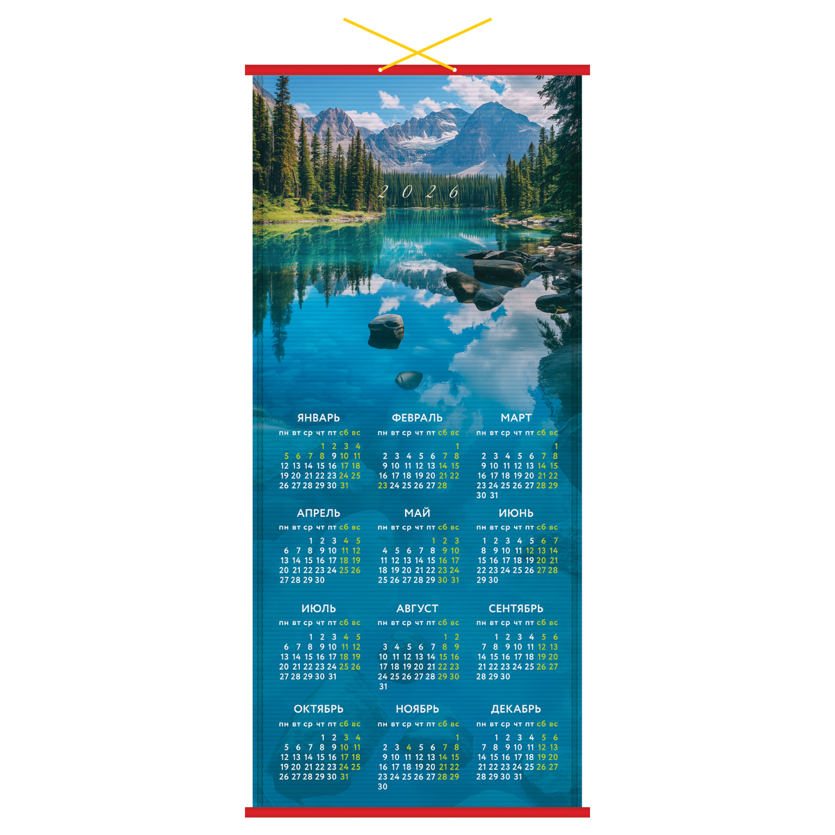 382137 Календарь настенный листовой А2, 450*590 мм BG "Озеро", 2026г (БиДжи)