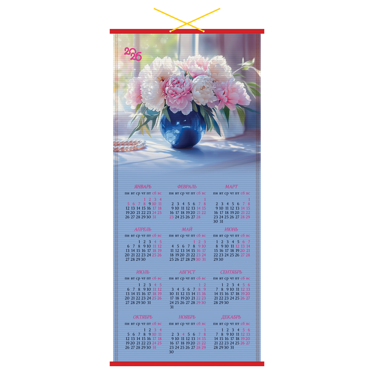 382144 Календарь настенный "циновка", 320*760 мм BG "Цветы", 2026г (БиДжи)