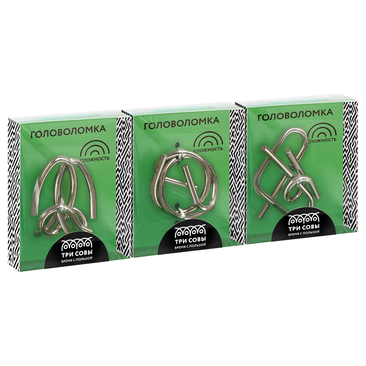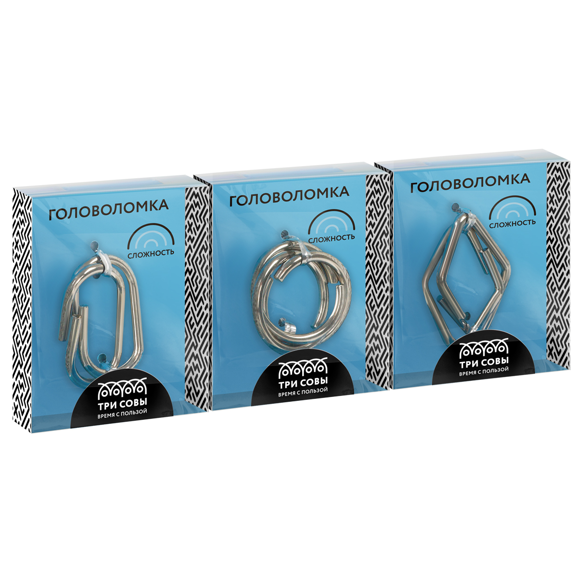 370197 Головоломка металлическая средняя ТРИ СОВЫ, ассорти, 3 уровень сложности