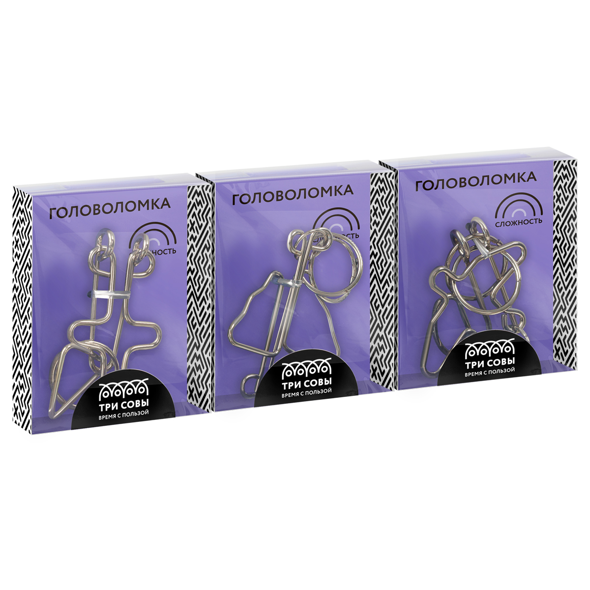 370193 Головоломка металлическая малая ТРИ СОВЫ, ассорти, 2 уровень сложности