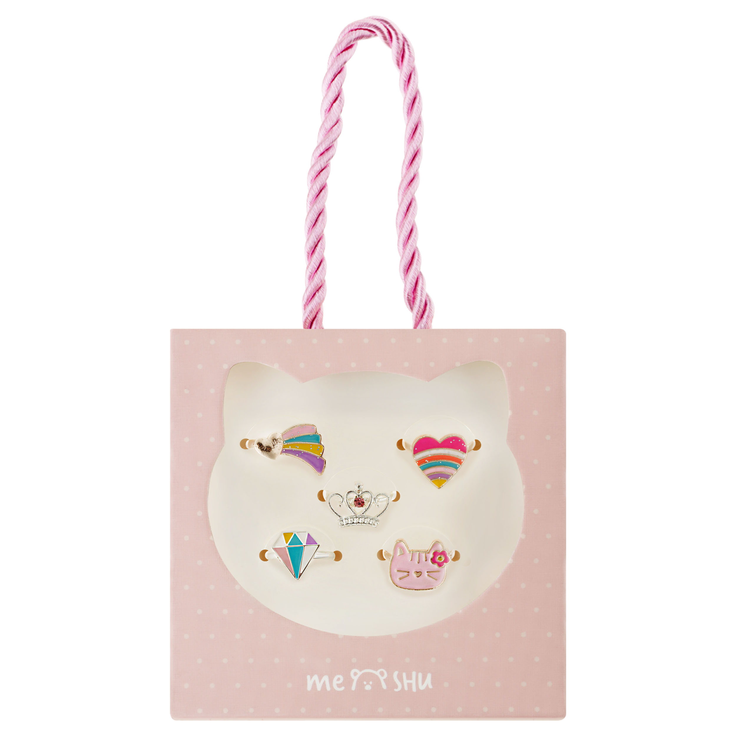 369292 Набор колец MESHU "Princess", бижутерия, 5шт., картонный бокс с ручкой