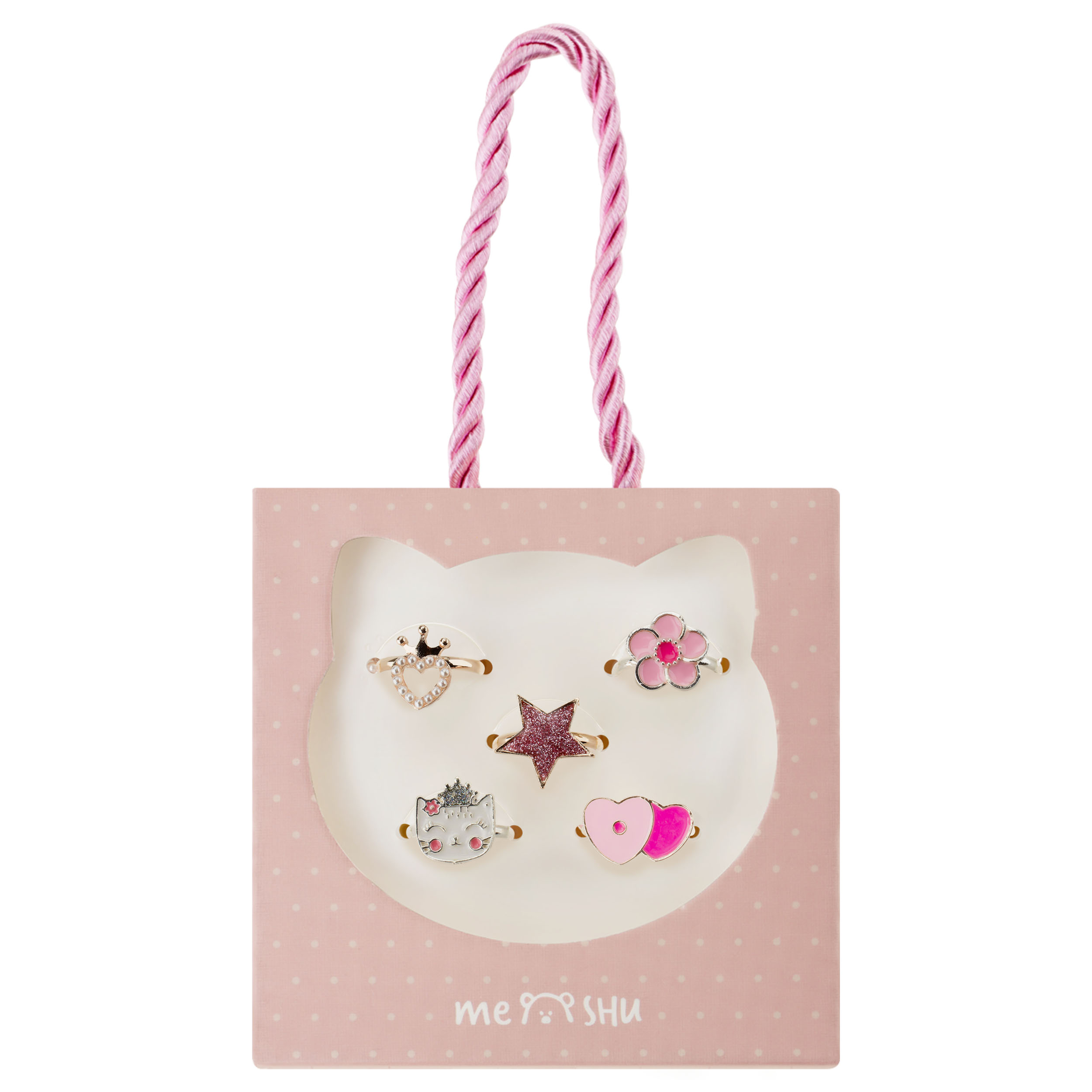 369294 Набор колец MESHU "Superstar", бижутерия, 5шт., картонный бокс с ручкой