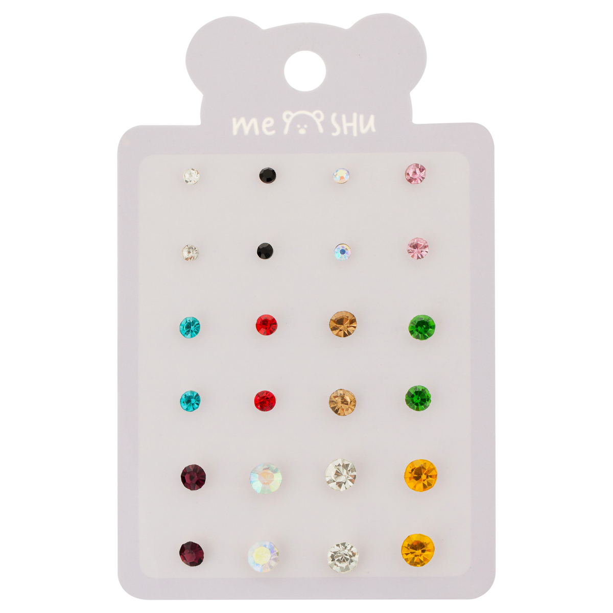 369277 Серьги MESHU "Rhinestones", бижутерия, 12 пар, европодвес