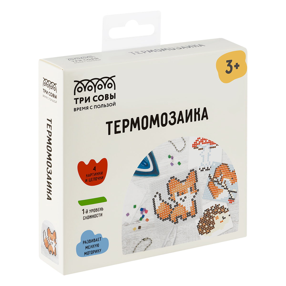 362518 Термомозаика ТРИ СОВЫ "Котик", набор инструментов и аксессуаров, трафареты, картонная коробка