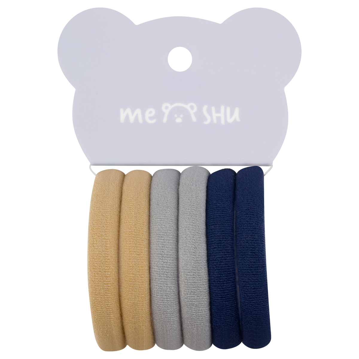 369173 Резинки для волос MESHU "Essence", бежевые, серые, темно-синие, 6шт., диаметр 4см, европодвес