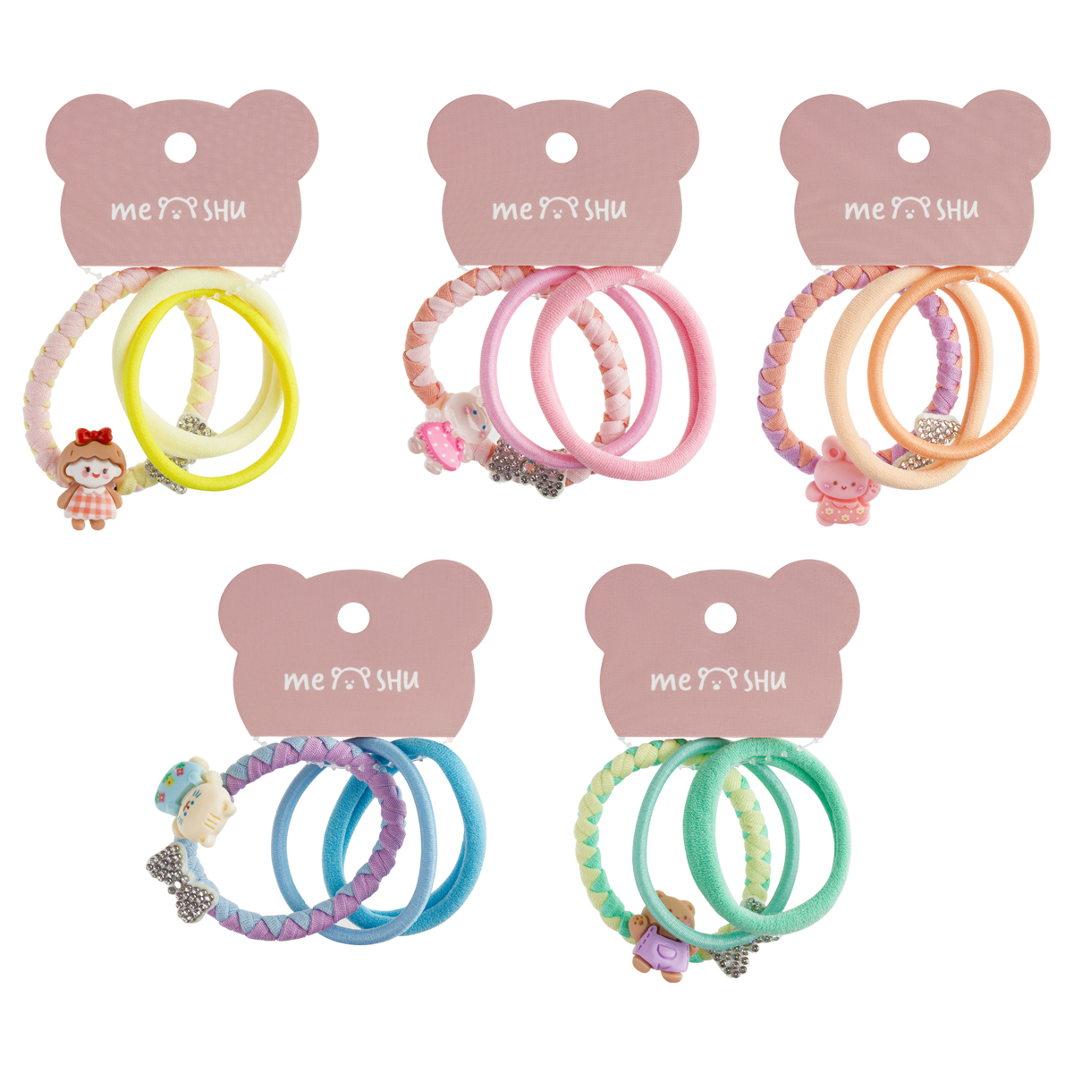 369181 Резинки для волос MESHU с пластиковыми топперами, тонкие, ассорти, 5шт., диаметр 2,5см, европодвес
