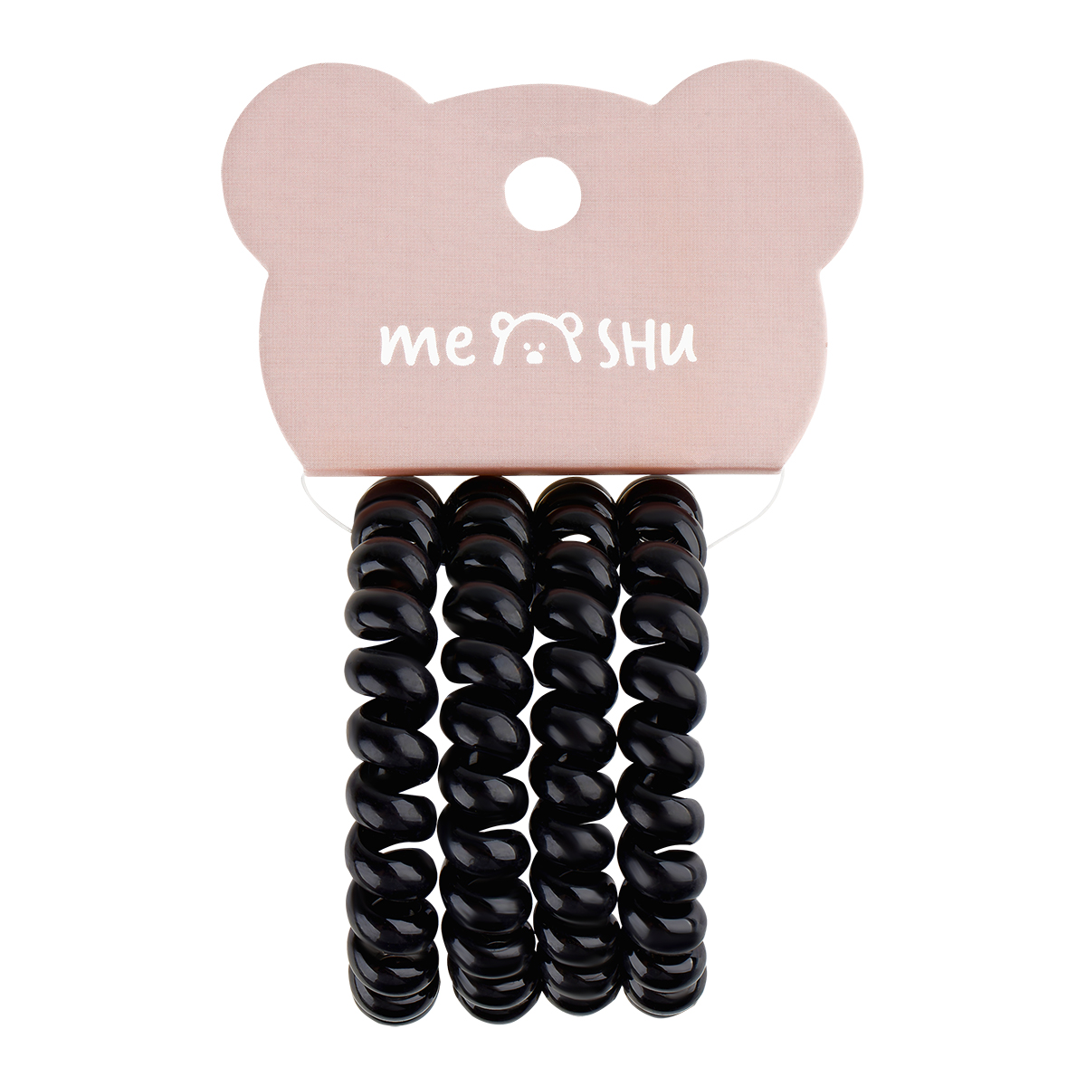 369195 Резинки для волос MESHU, пружинки, черные, 4шт., диаметр 4,5см, европодвес