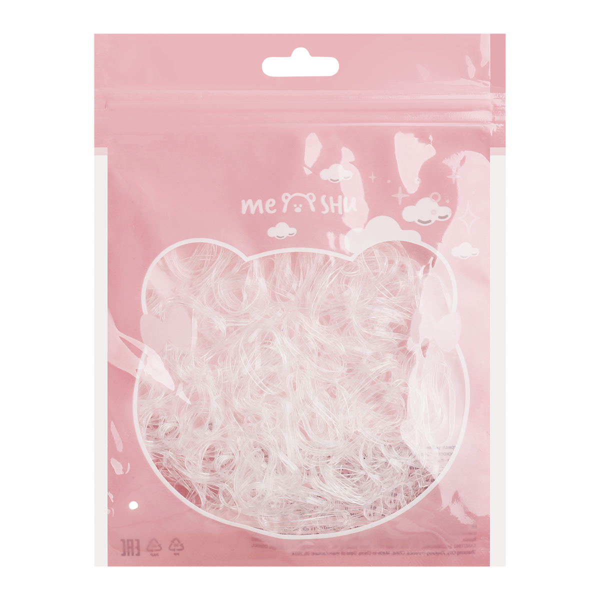 369205 Резинки для волос MESHU, прозрачные, 300шт., диаметр 2см, европодвес