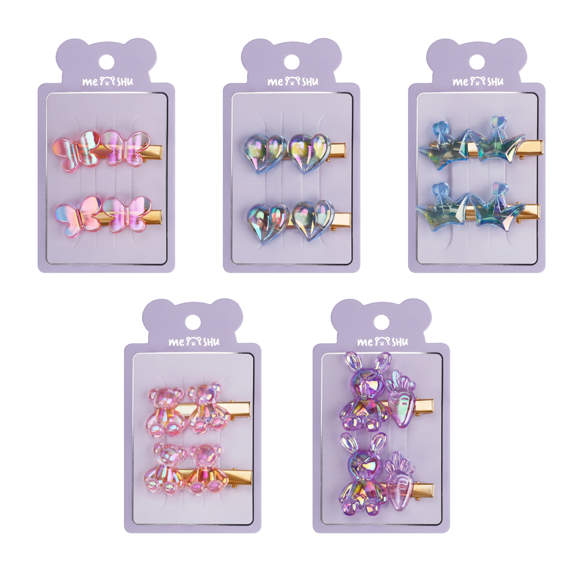 369225 Заколки для волос MESHU, клик-клак, наполнитель, ассорти, 2шт., 5,5см, европодвес