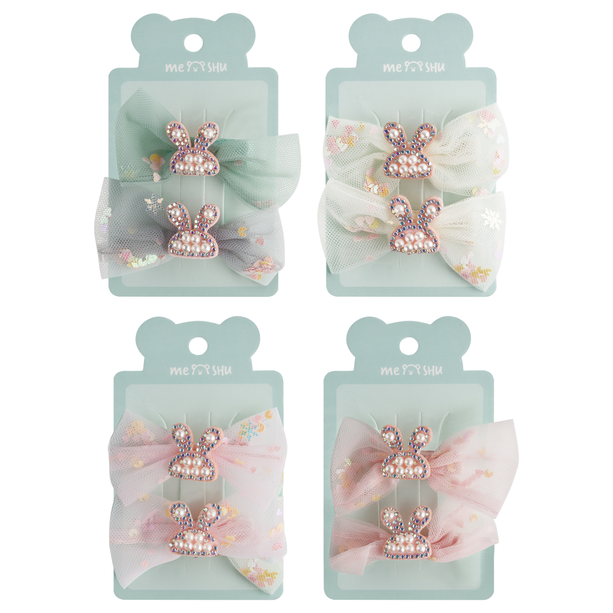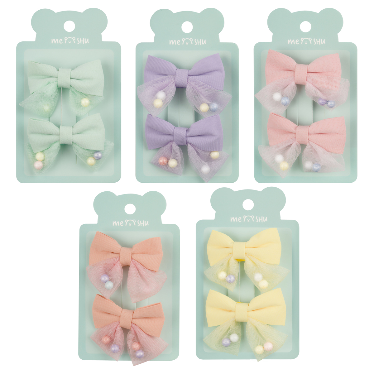 369265 Заколки для волос MESHU, бант-прищепка, ассорти, 2шт., 7см, европодвес