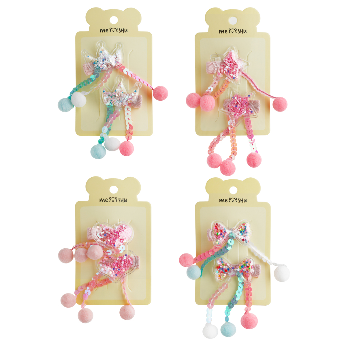 369233 Заколки для волос MESHU, прищепки с помпонами, ассорти, 2шт., 4*6см, европодвес