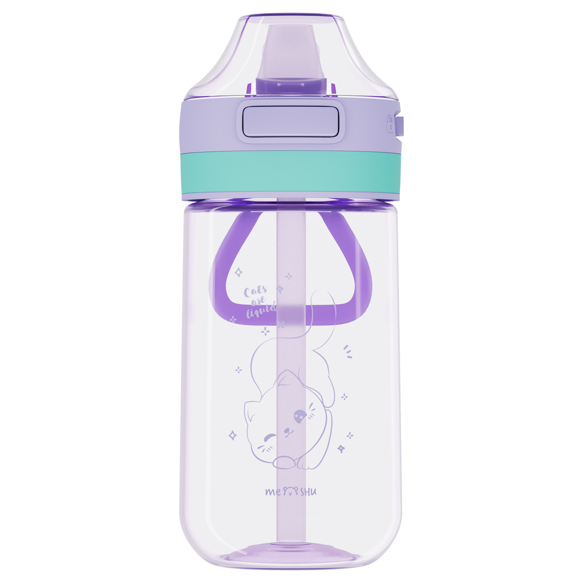 382089 Бутылка для воды с трубочкой MESHU "Cat" 480мл, пластик, сиреневая