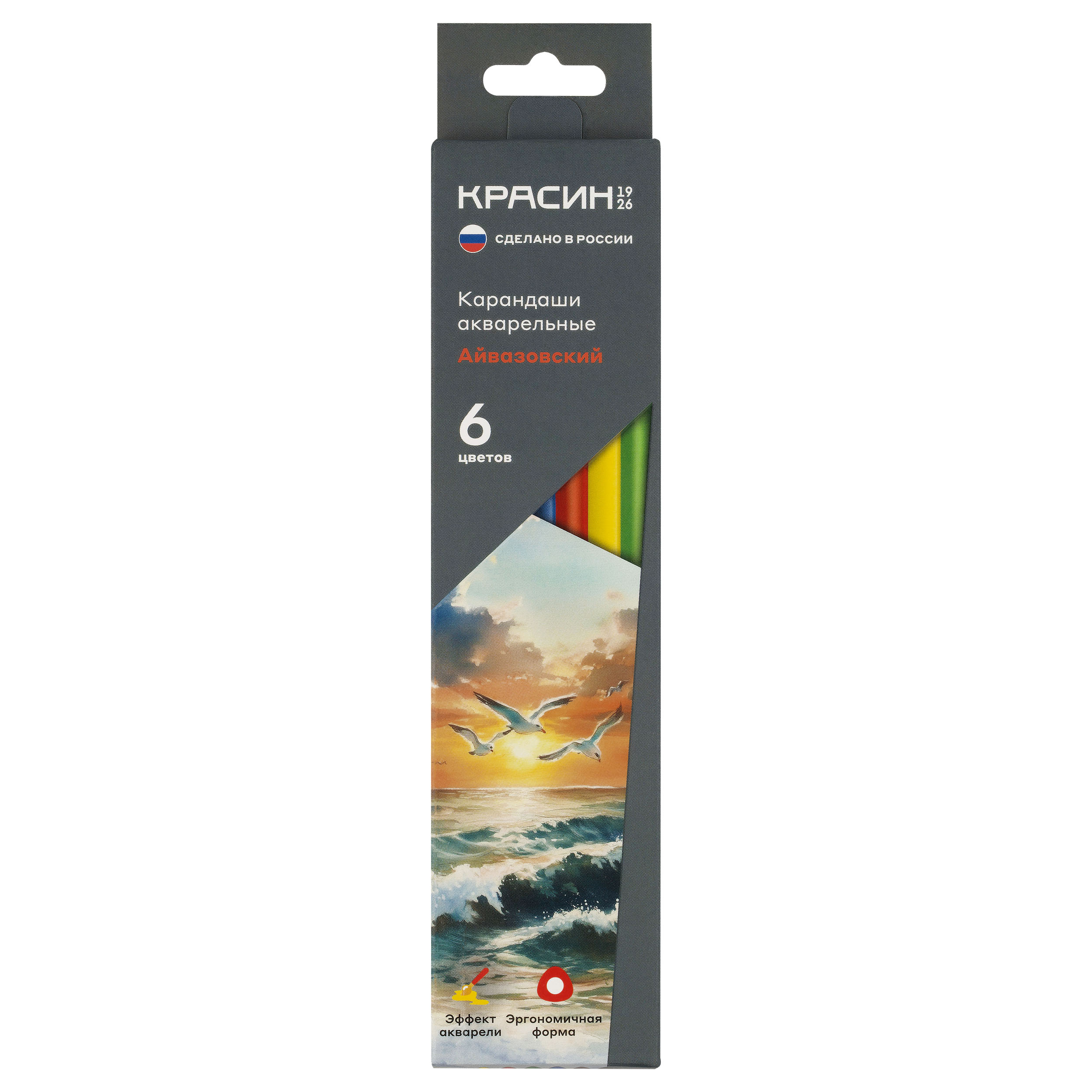 377112 Карандаши акварельные Красин "Айвазовский", 06цв., трехгран., заточен., картон, европодвес