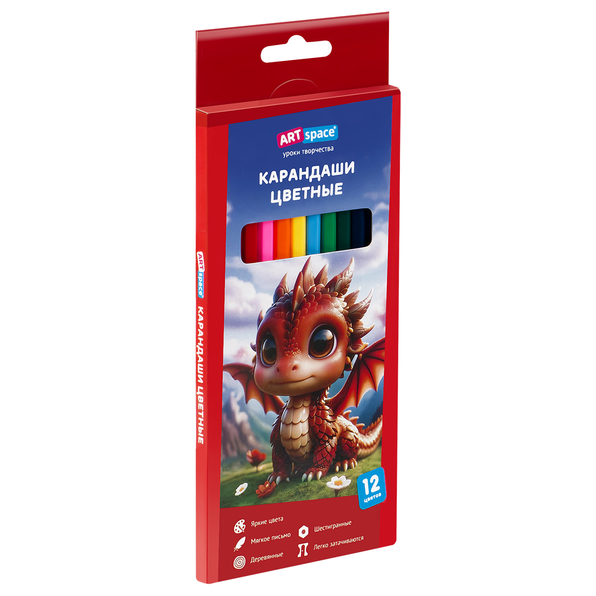 372356 Карандаши цветные ArtSpace "Дракоша", 12цв., шестигранные, заточен., картон. упак., европодвес (Спейс)