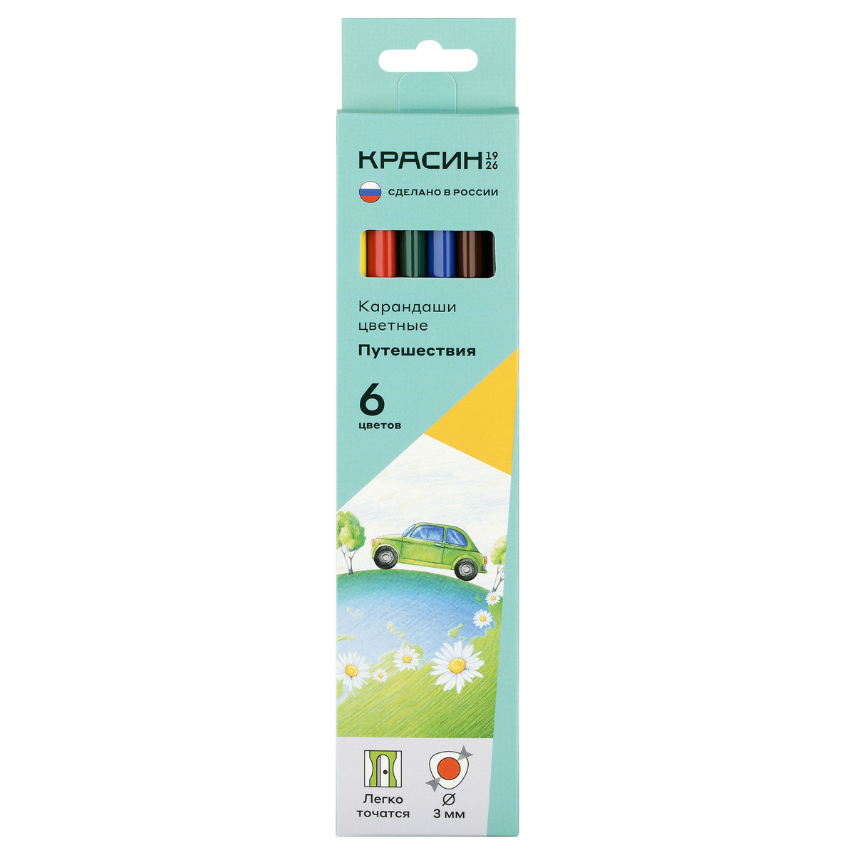 367501 Карандаши цветные Красин "Путешествия", 06цв., трехгран., заточен., картон, европодвес