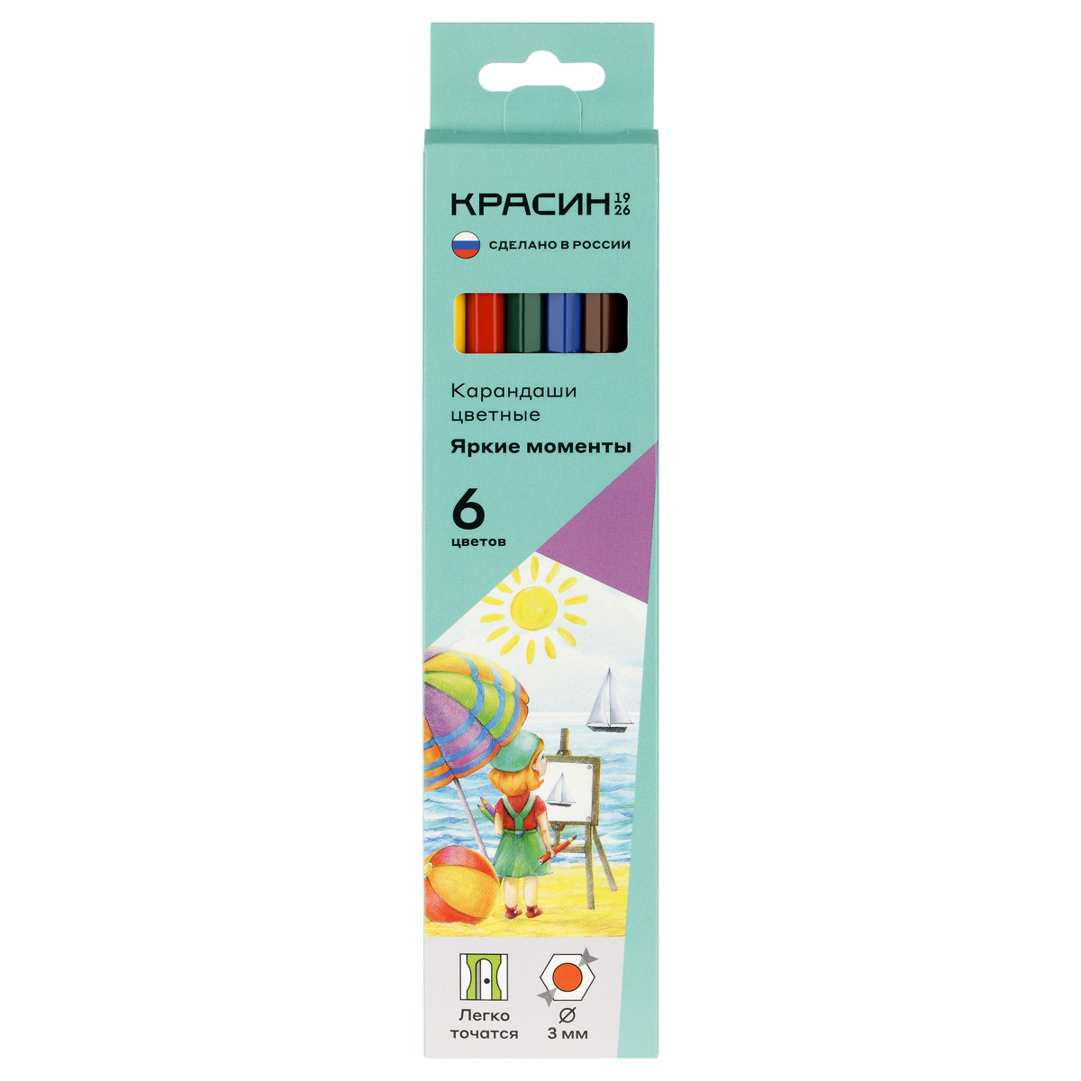 367506 Карандаши цветные Красин "Яркие моменты", 06цв., шестигран., заточен., картон, европодвес
