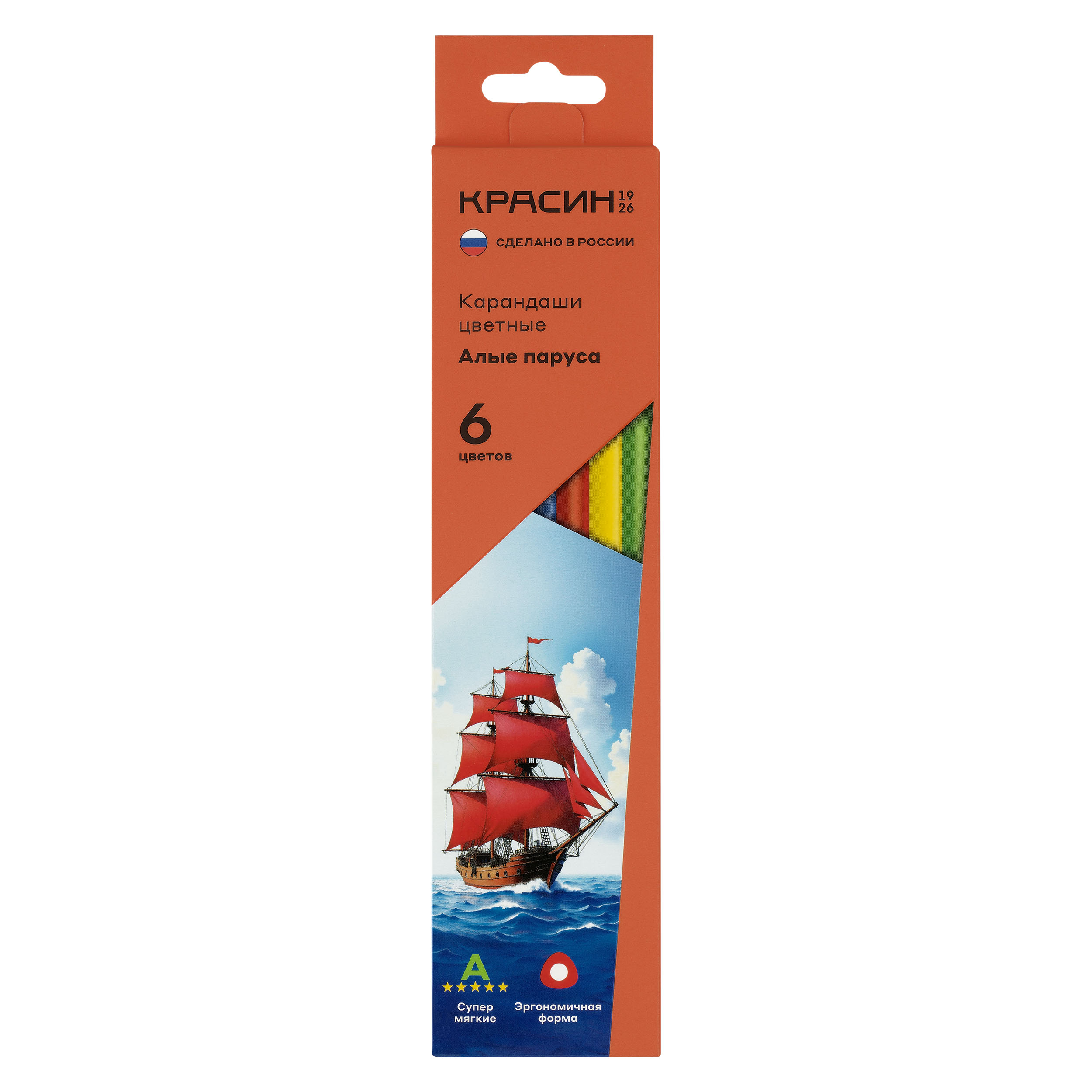 356627 Карандаши цветные Красин "Алые Паруса", 06цв., трехгран., заточен., картон, европодвес