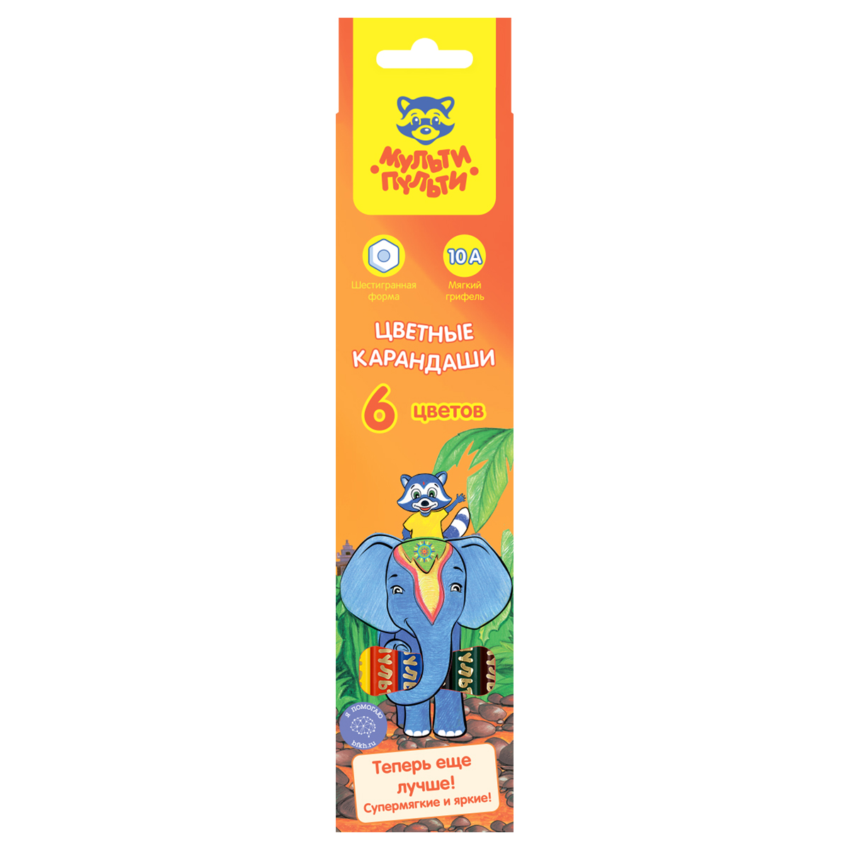 304695 Карандаши с многоцветным грифелем Мульти-Пульти "Енот и радуга", 06цв., заточен., европодвес