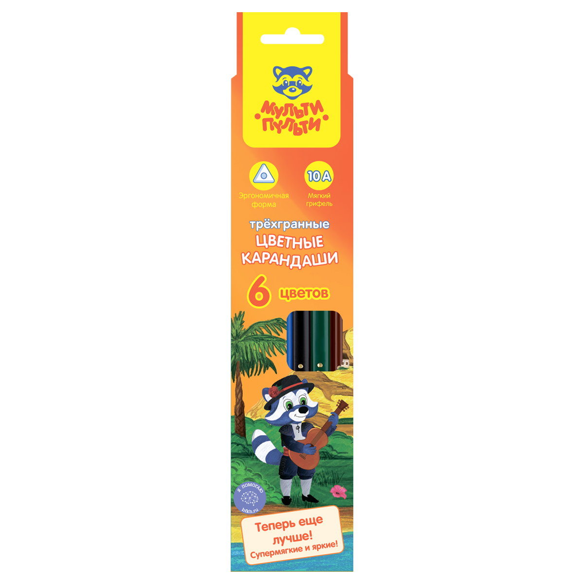 255793 Карандаши цветные Мульти-Пульти "Енот на лужайке", 06цв., трехгранные, неоновые, картон