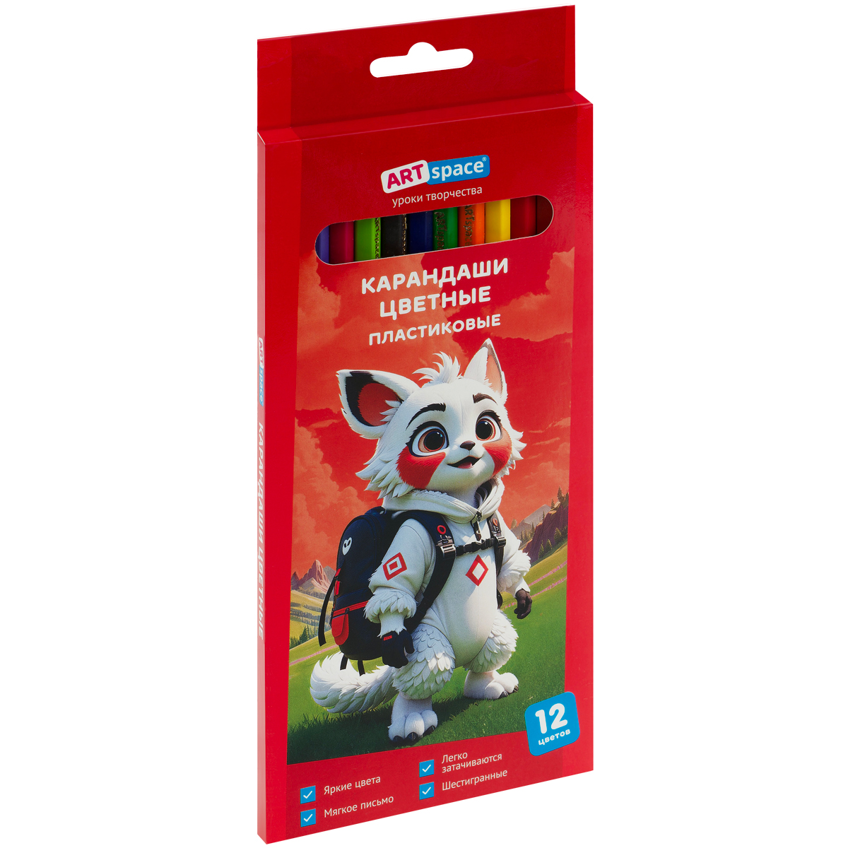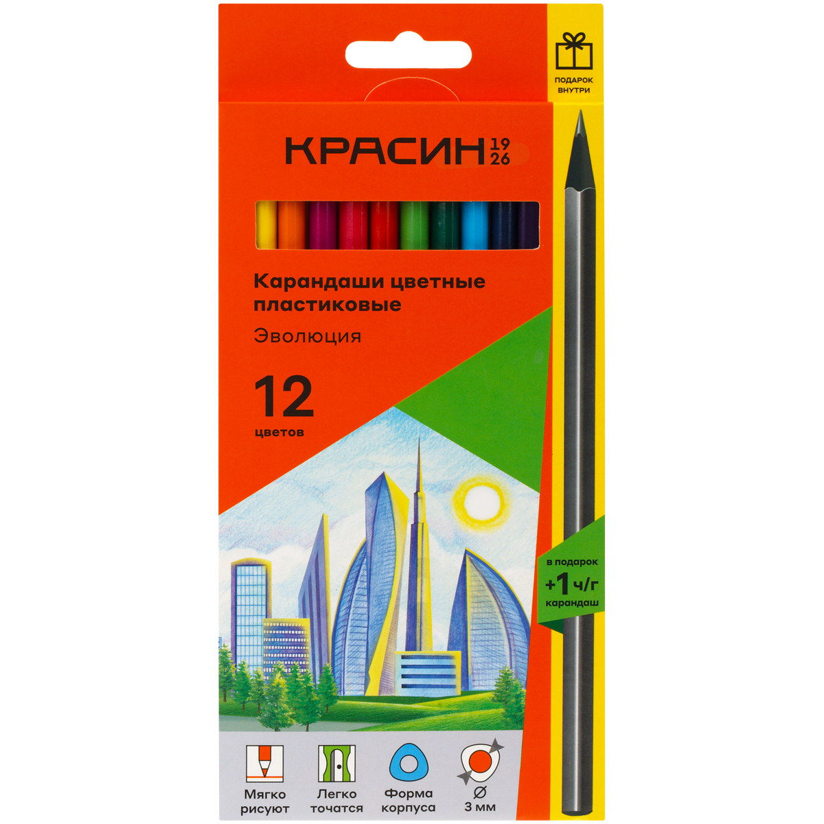 361296 Карандаши цветные пластиковые Красин "Эволюция", 12цв.+1 ч/г HB, заточен., картон, европодвес