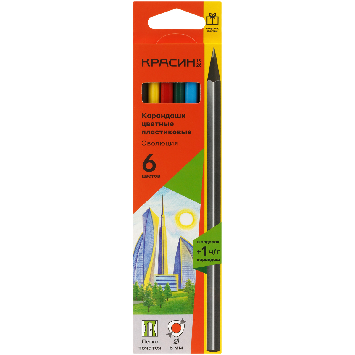 361295 Карандаши цветные пластиковые Красин "Эволюция", 06цв.+1 ч/г HB, заточен., картон, европодвес
