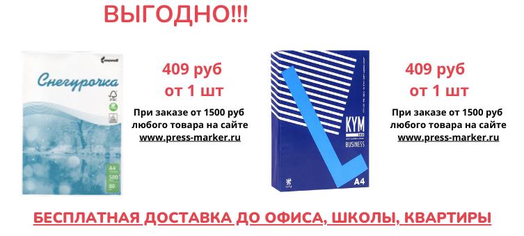 Чтобы вы могли купить канцтовары в интернет-магазине «МаркерПресс» максимально выгодно, мы установили низкие цены, регулярно проводим акции и дарим полезные подарки. К тому же своим постоянным клиентам мы даем возможность отсрочить платеж, если в этом есть необходимость. Сэкономить поможет еще и бесплатная доставка товаров до вашего рабочего места нашим транспортом.